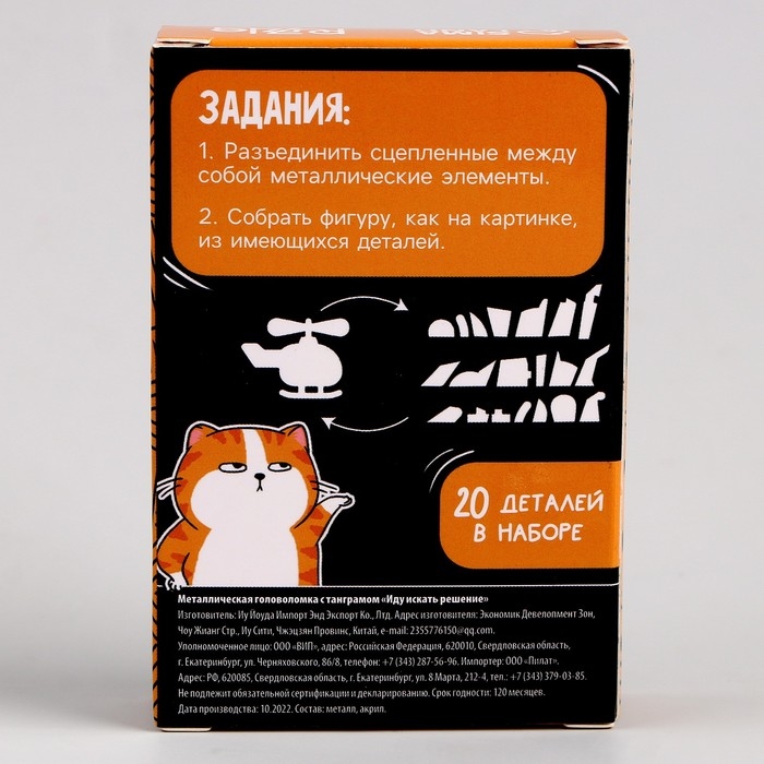 Металлическая головоломка «Иду искать решение», с танграмом