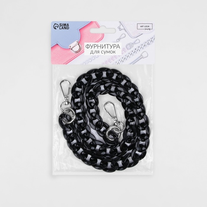 Цепочка для сумки, пластиковая, с карабинами, 23 × 17 мм, 68 см, цвет чёрный/серебряный