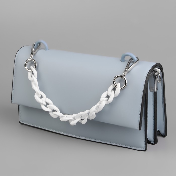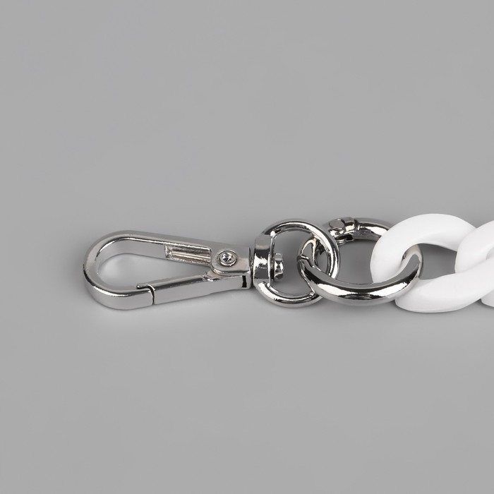 Цепочка для сумки, пластиковая, с карабинами, 23 × 17 мм, 30 см, цвет белый/серебряный