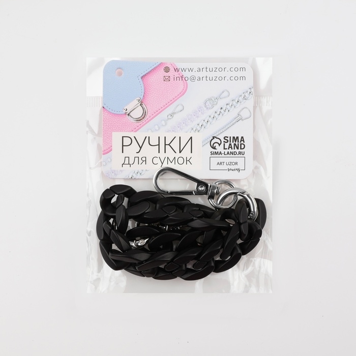 Цепочка для сумки, пластиковая, с карабинами, 23 × 17 мм, 30 см, цвет чёрный/серебряный