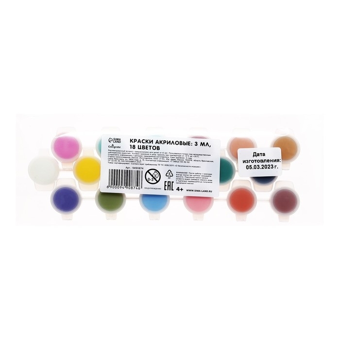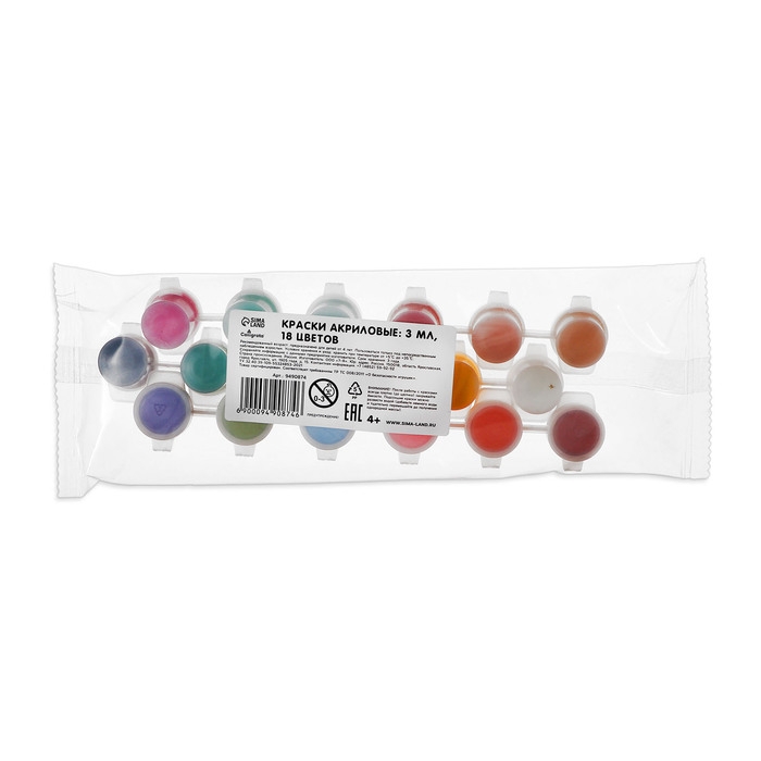 Краска акриловая, набор 18 цветов х 3 мл, Calligrata, морозостойкие, в пакете
