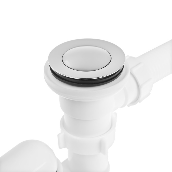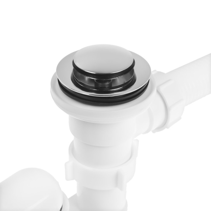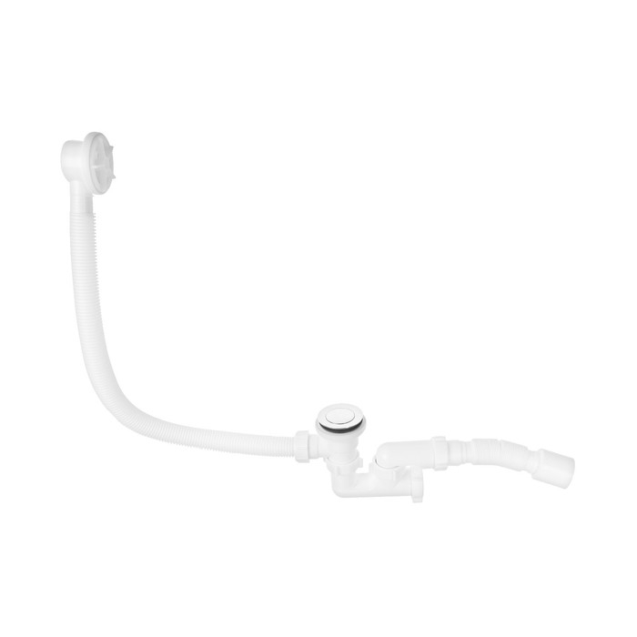 Сифон используется для ванны. Слив воды закрывается и открывается с помощью нажатия на кнопку выпуска.