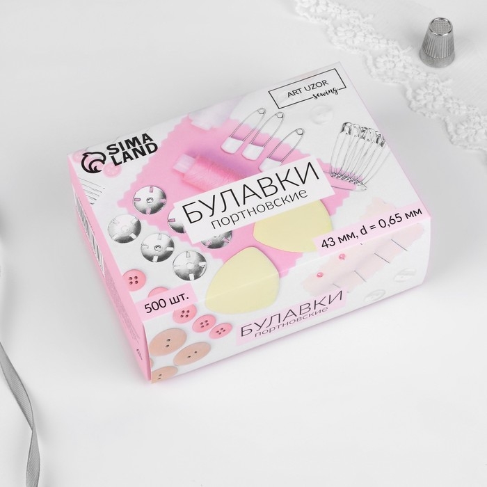 Булавки портновские, 43 мм, 500 ± 10 шт, цвет серебряный