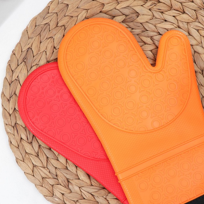Рукавица для горячего с манжетой Доляна «Профи», силикон, 36×18,5 см, цвет МИКС
