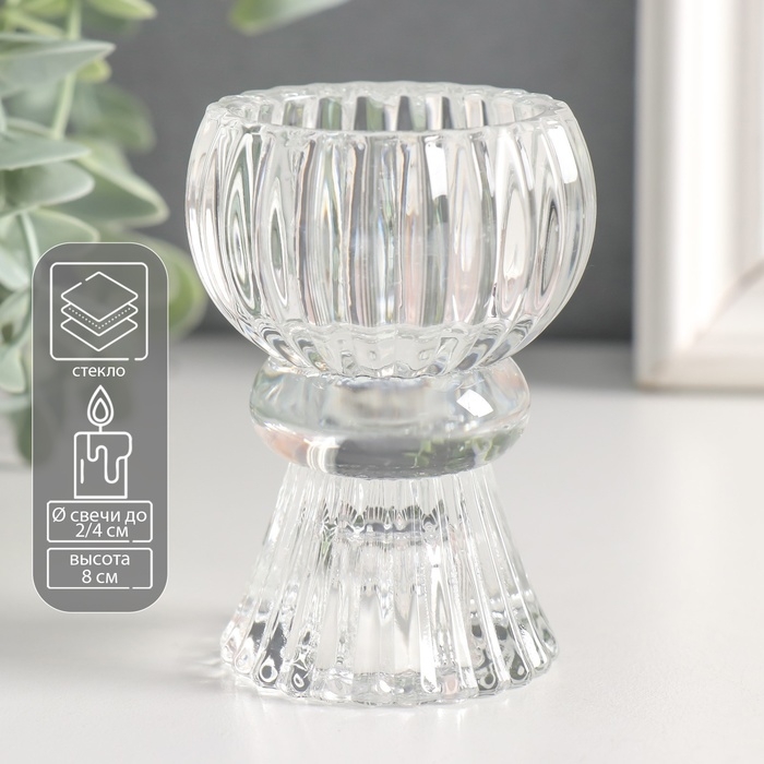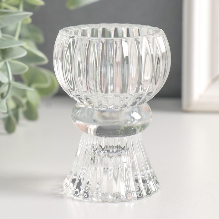 Подсвечник стекло "Шар на ножке" двухсторонний прозрачный d- 2 и 4 см 5,5х5,5х8 см