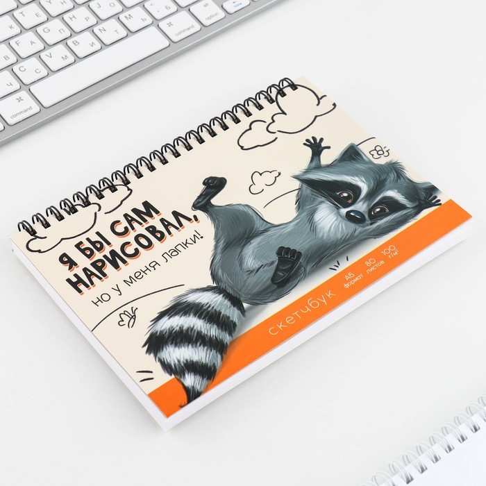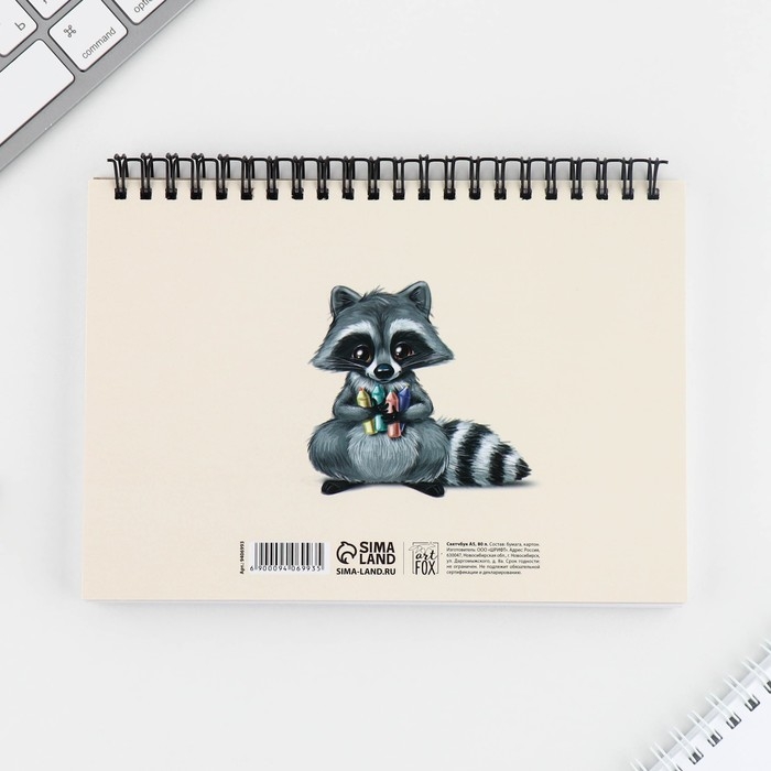 Скетчбук А5, 80 листов,твердая обложка, «Енот».