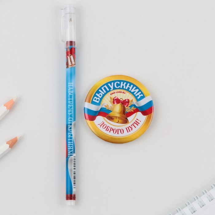 Подарочный набор на выпускной ручка шариковая 0.5 мм, значок «НА всех парусах навстречу мечте»
