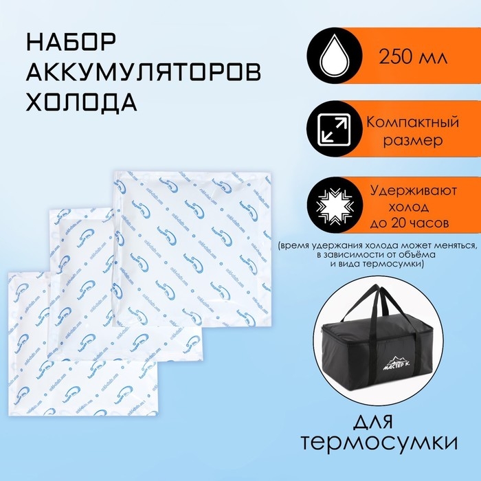 Набор аккумуляторов холода - гелевый хладоэлемент для термосумки "Мастер К.", 3 шт по 300 мл