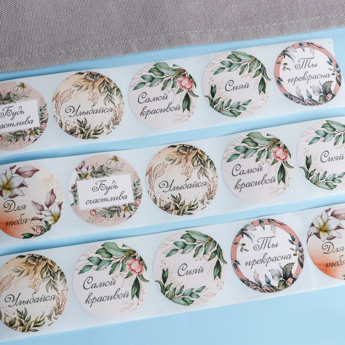 Наклейки для цветов и подарков "Желаю тебе", 4,4 х 4,4 см, набор 252 шт