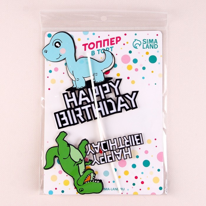 Набор топперов «С днём рождения. Динозавр», 2 шт.