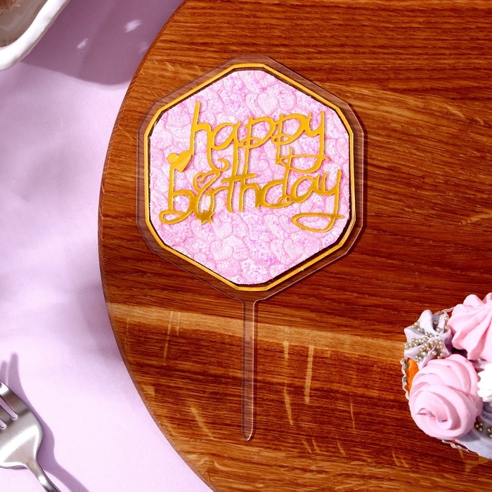 Топпер для торта «С Днём Рождения», 15×13,5 см, цвет золотой