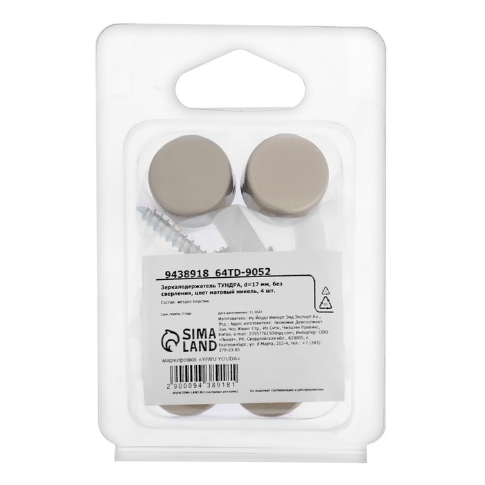 Зеркалодержатель ТУНДРА, d=17 мм, без сверления, цвет матовый никель, 4 шт.