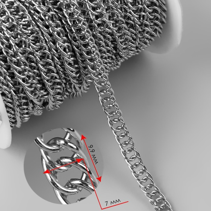 Цепочка для сумки, железная, 7 × 5 мм, 10 ± 0,5 м, цвет серебряный