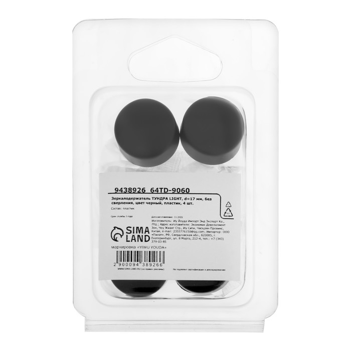 Зеркалодержатель ТУНДРА LIGHT, d=17 мм, без сверления, цвет черный, пластик, 4 шт.