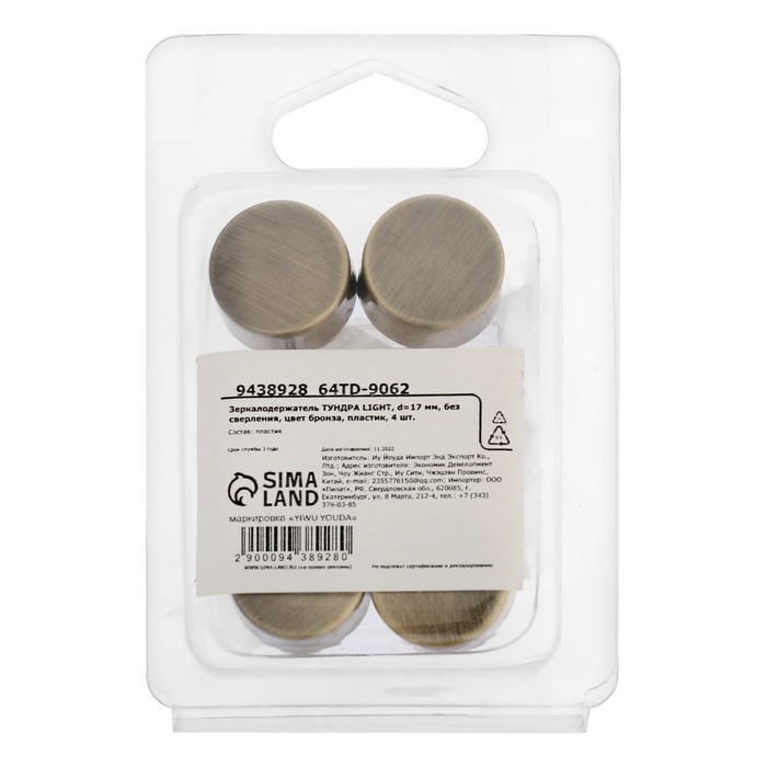 Зеркалодержатель ТУНДРА LIGHT, d=17 мм, без сверления, цвет бронза, пластик, 4 шт.