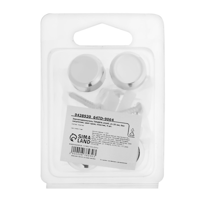 Зеркалодержатель ТУНДРА LIGHT, d=20 мм, без сверления, цвет хром, пластик, 4 шт.