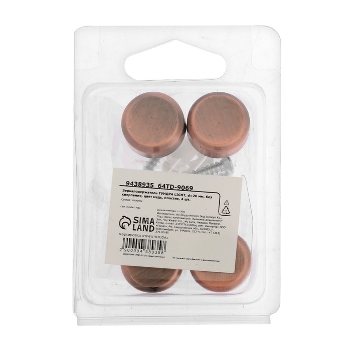 Зеркалодержатель ТУНДРА LIGHT, d=20 мм, без сверления, цвет медь, пластик, 4 шт.