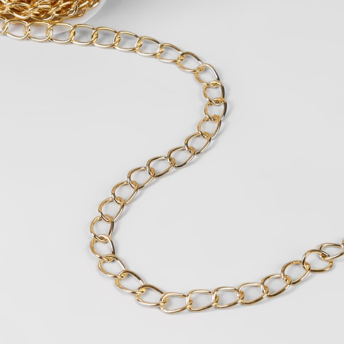 Цепочка для сумки, плоская, алюминиевая, 7 × 9,8 мм, 10 ± 0,5 м, цвет золотой