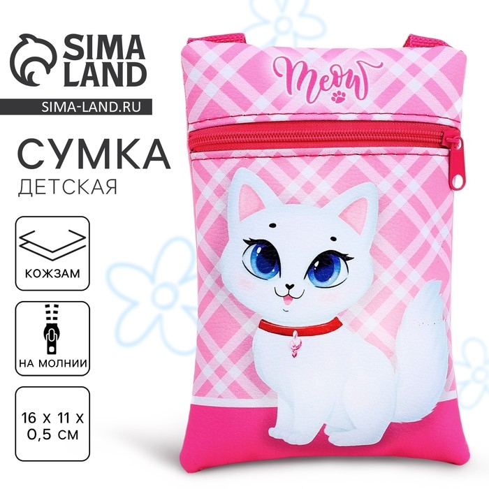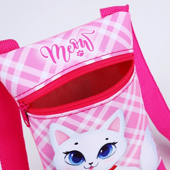 Сумка детская для девочки на молнии, длинный ремень, цвет розовый