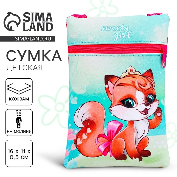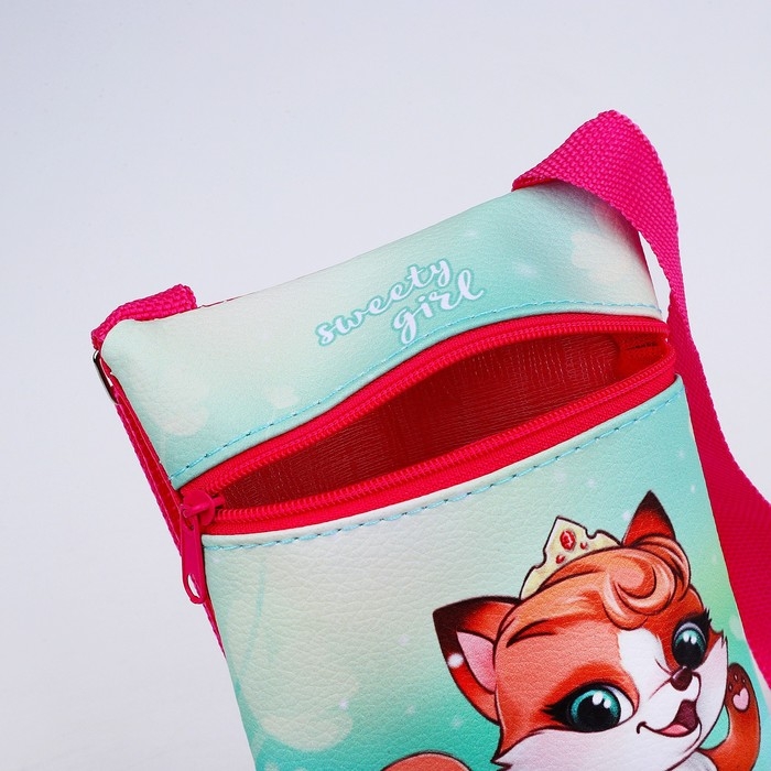 Сумка детская для девочки на молнии, длинный ремень, цвет зелёный/красный