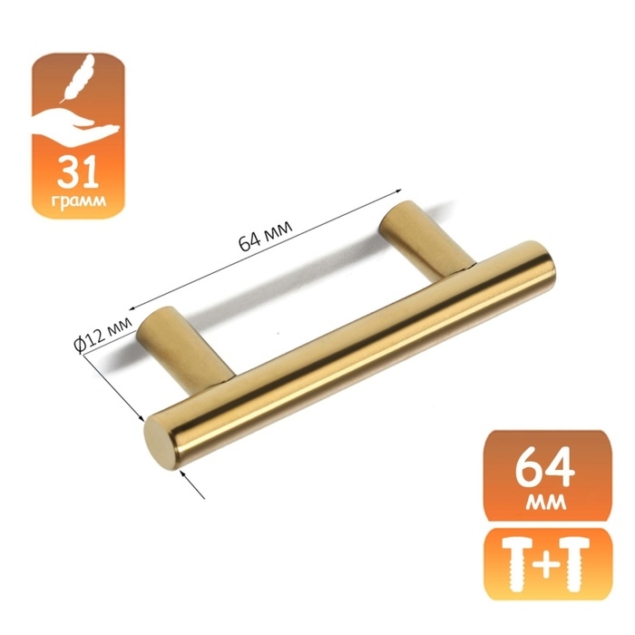 Ручка рейлинг CAPPIO FRIDA, нерж. сталь, d=12 мм, м/о 64 мм, цвет золото