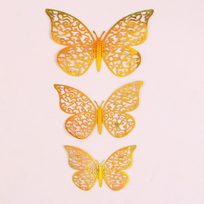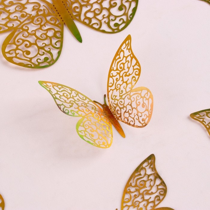 Набор топперов «Бабочки», 12 штук, голография, цвет золото