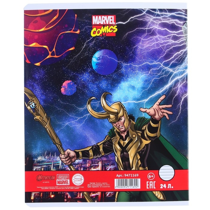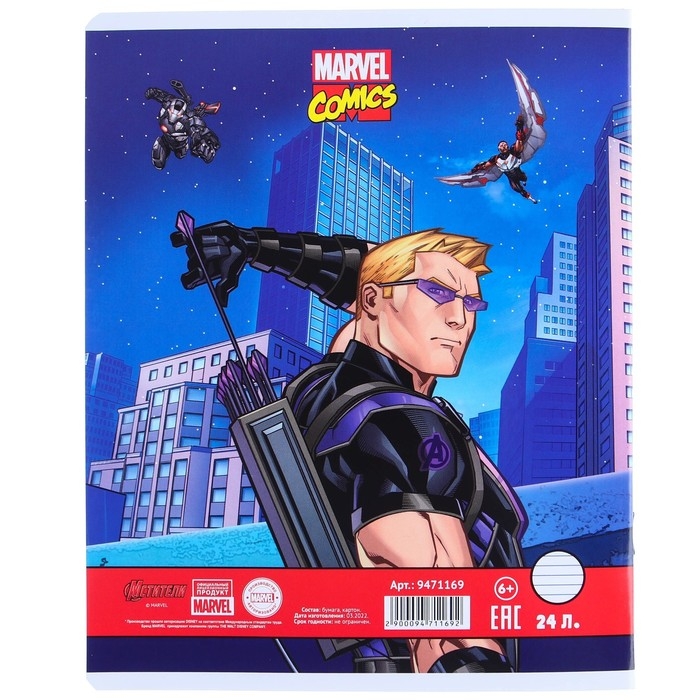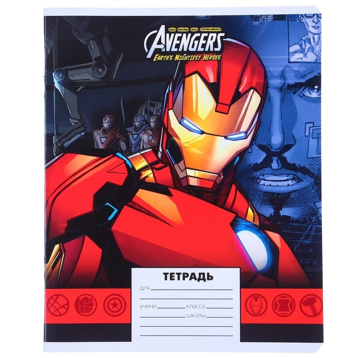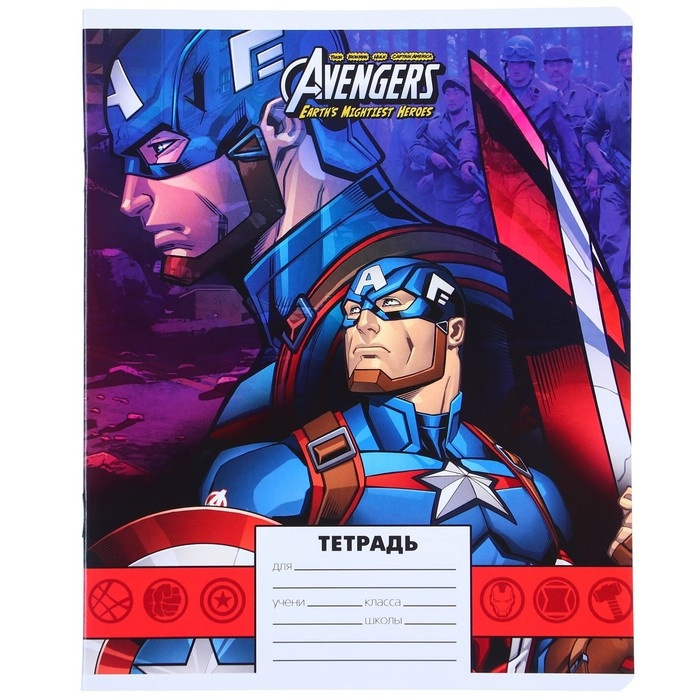 Набор тетрадей 10 штук, 24 листа в линейку, обложка мелованный картон, Мстители