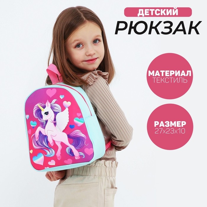 Рюкзак детский для девочки «Единорог», 27х23 см