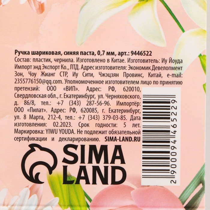 Ручка шариковая синяя паста 0.7 мм «Ты совершенна» пластик с тиснением на корпусе