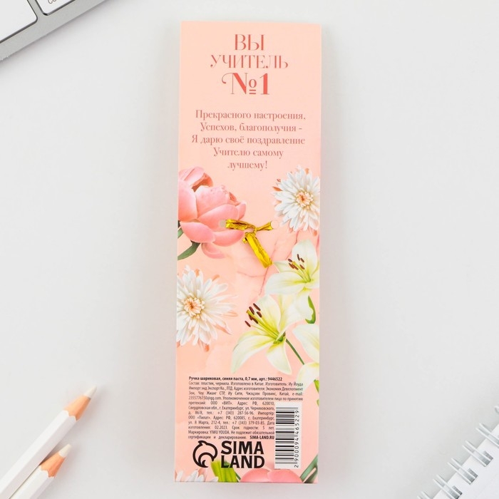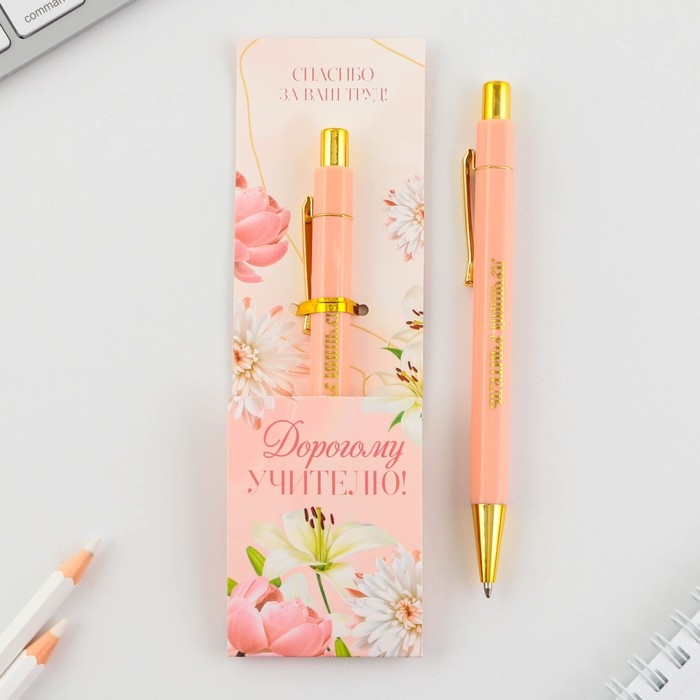Ручка шариковая пластик «Дорогому учителю !», с тиснением на корпусе, синяя паста, 0,7 мм.