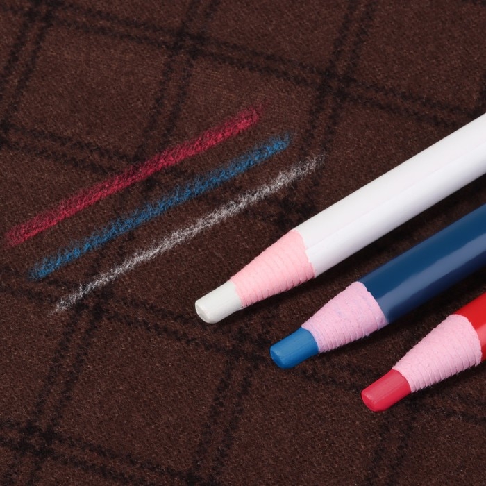 Карандаш для ткани, самозатачивающийся, 3 шт, цвет белый, красный, синий