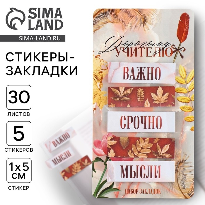 Набор стикеров закладок «Дорогому учителю», 5 штук, 30 листов