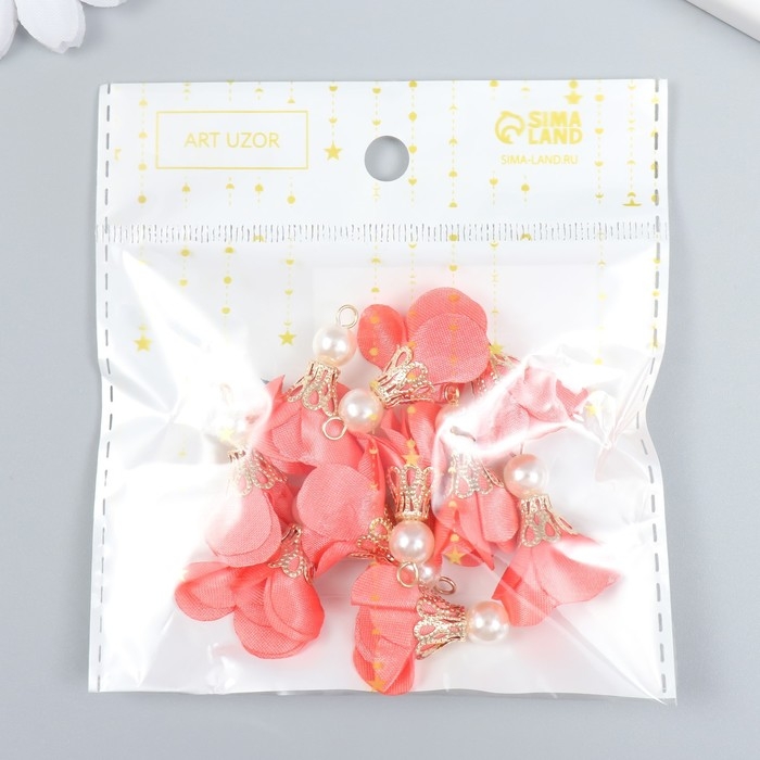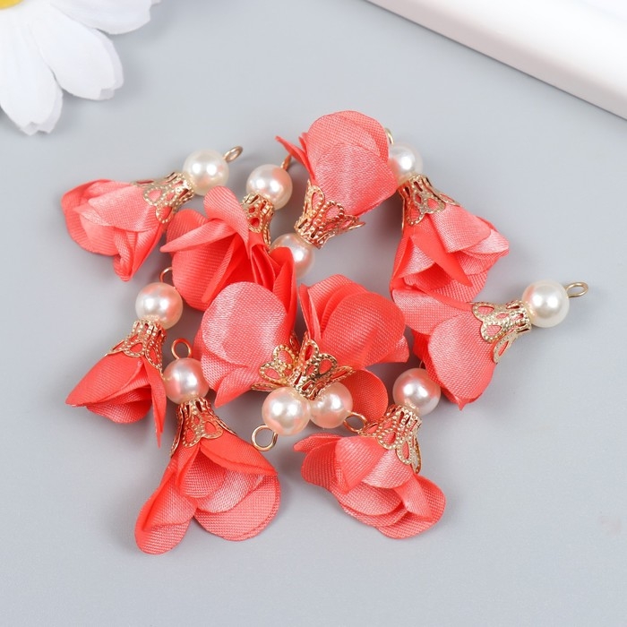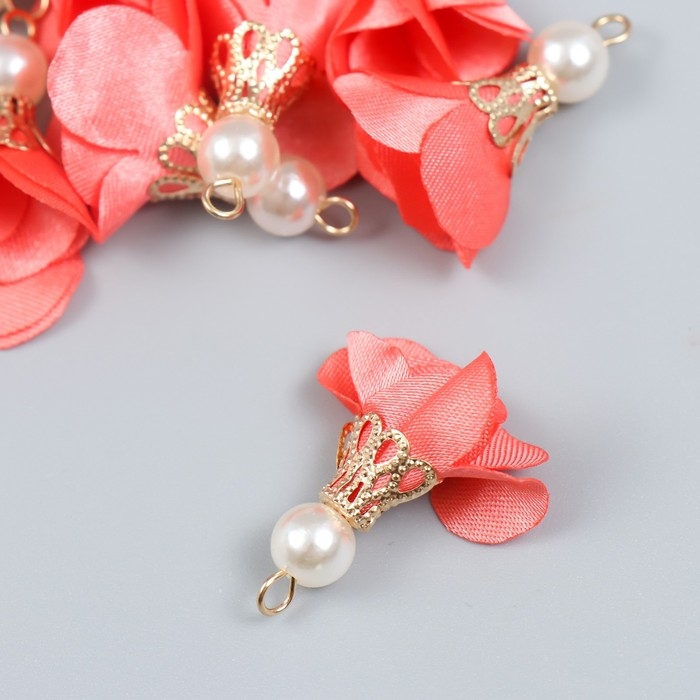 Декор для творчества текстиль "Цветок с жемчужиной. Коралловый" набор 10 шт 2,5 см
