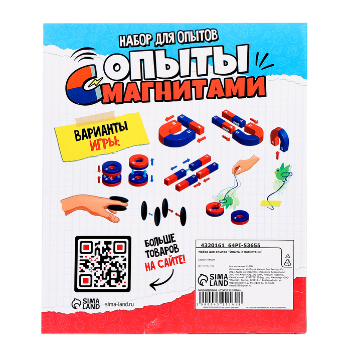 Набор для опытов «Опыты с магнитами» — это уникальная возможность для детей от 5 лет познакомиться с основными законами физики через увлекательные эксперименты. В комплект входят 10 магнитов и катушка ниток, которые позволят провести 8 различных опытов.