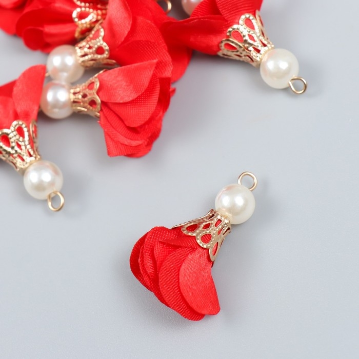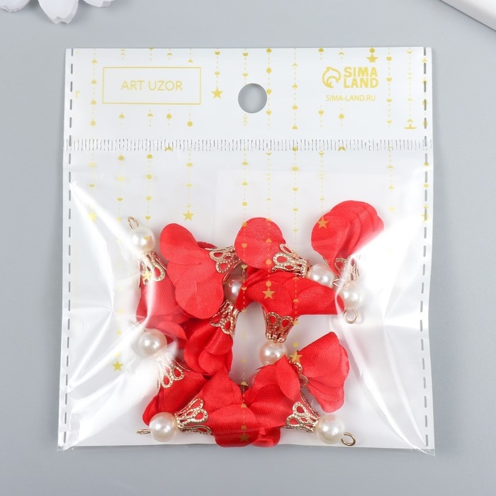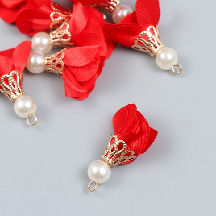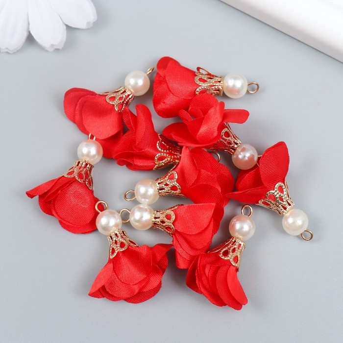 Декор для творчества текстиль "Цветок с жемчужиной. Красный" набор 10 шт 2,5 см