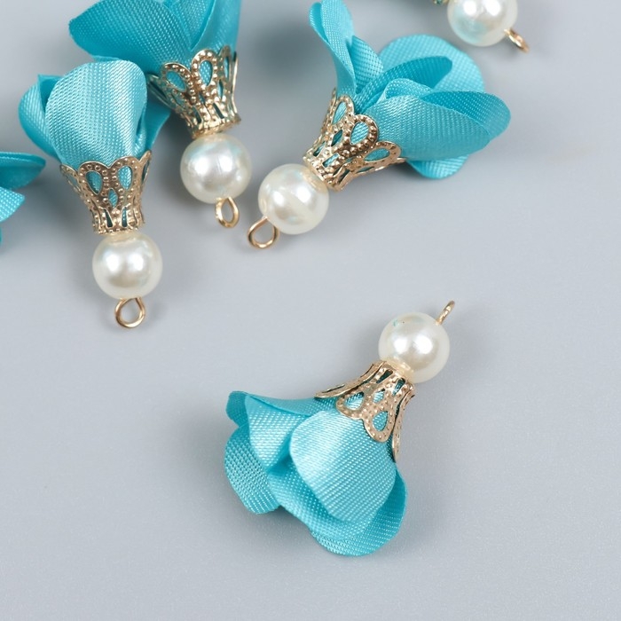 Декор для творчества текстиль "Цветок с жемчужиной. Небесный" набор 10 шт 2,5 см