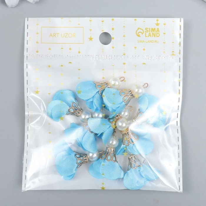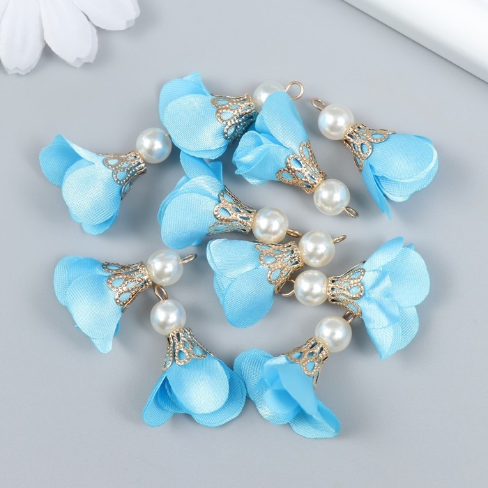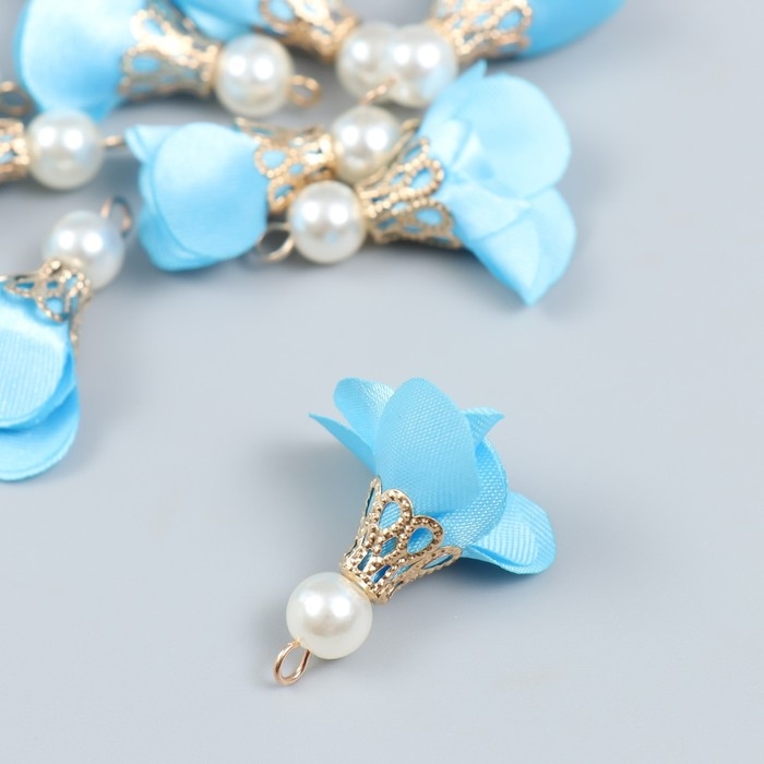 Декор для творчества текстиль "Цветок с жемчужиной. Небесный" набор 10 шт 2,5 см