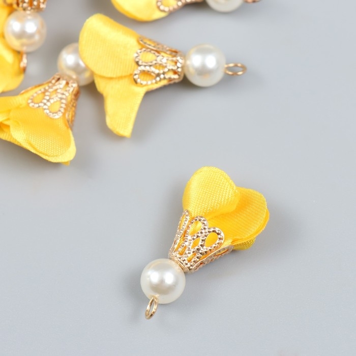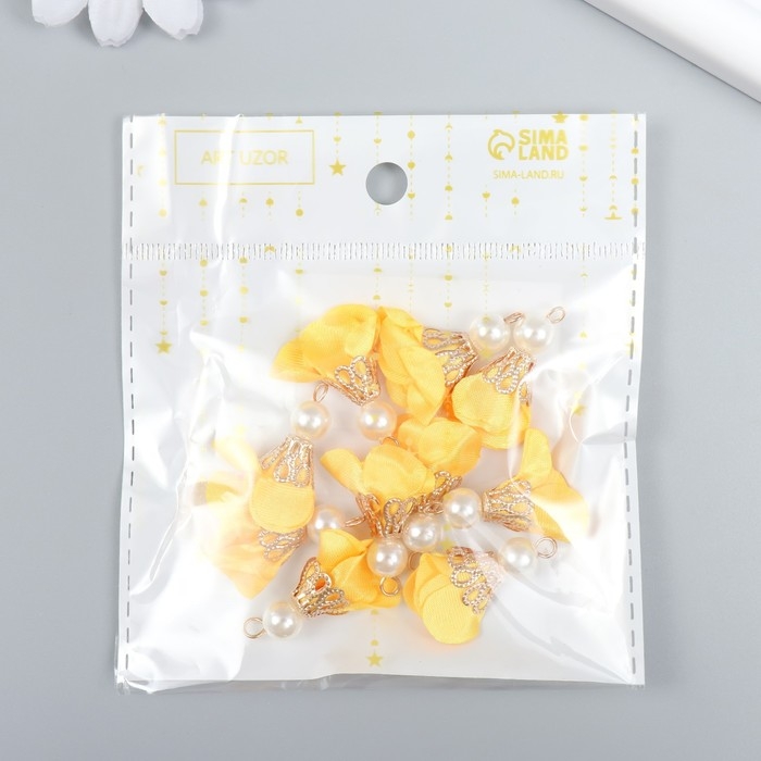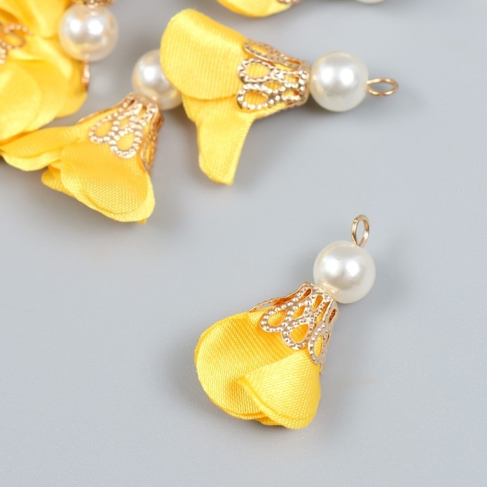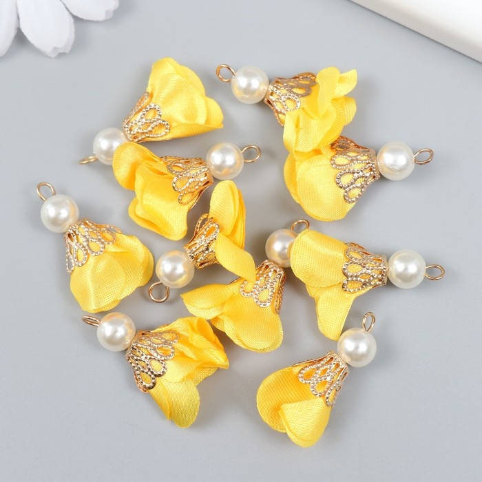 Декор для творчества текстиль "Цветок с жемчужиной. Жёлтый" набор 10 шт 2,5 см