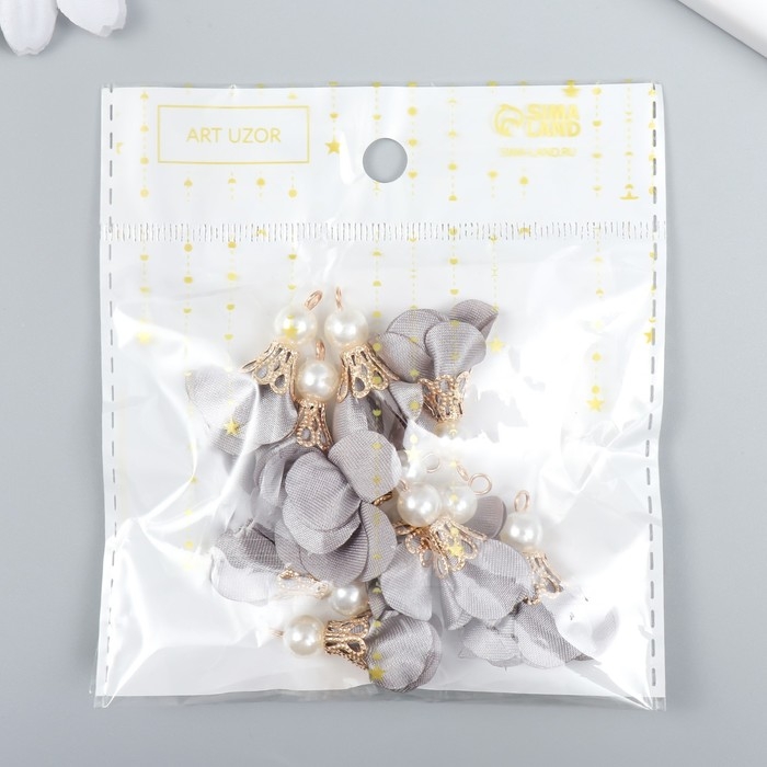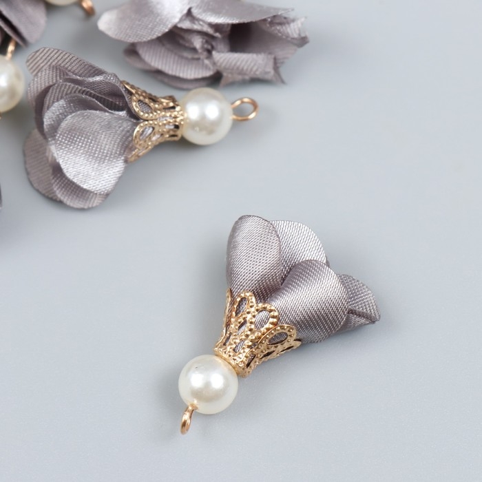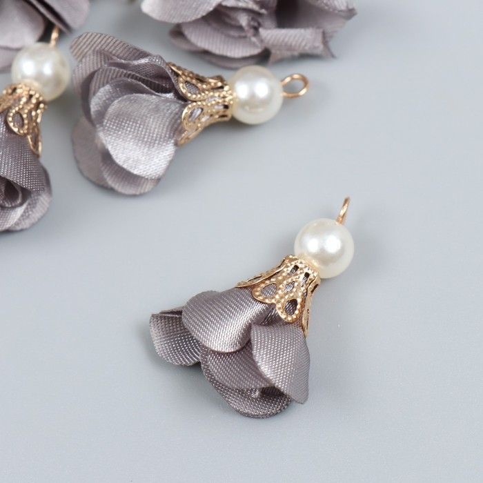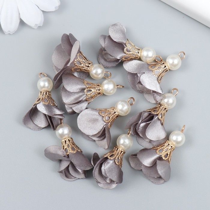 Декор для творчества текстиль "Цветок с жемчужиной. Серый" набор 10 шт 2,5 см