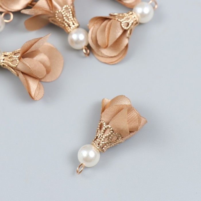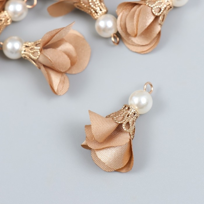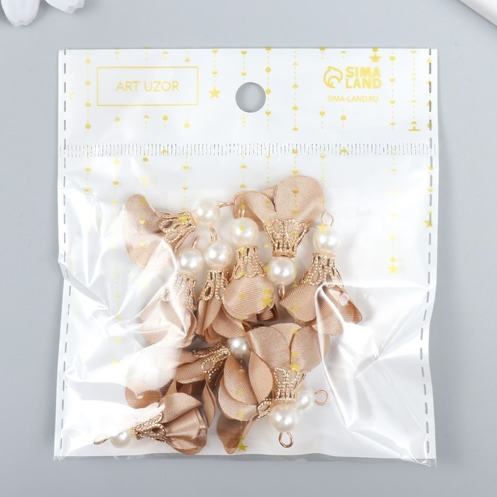 Декор для творчества текстиль "Цветок с жемчужиной. Миндаль" набор 10 шт 2,5 см