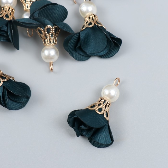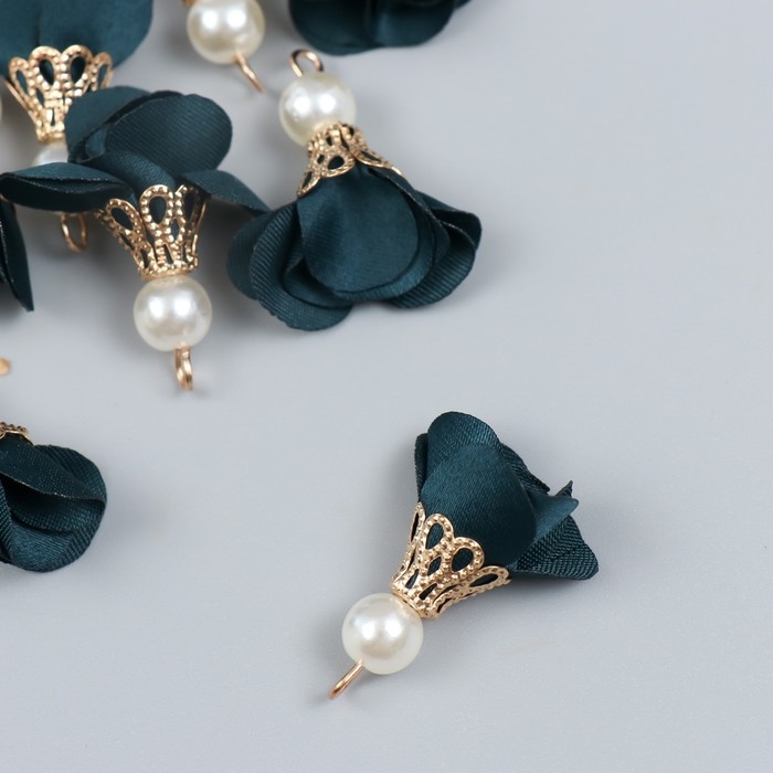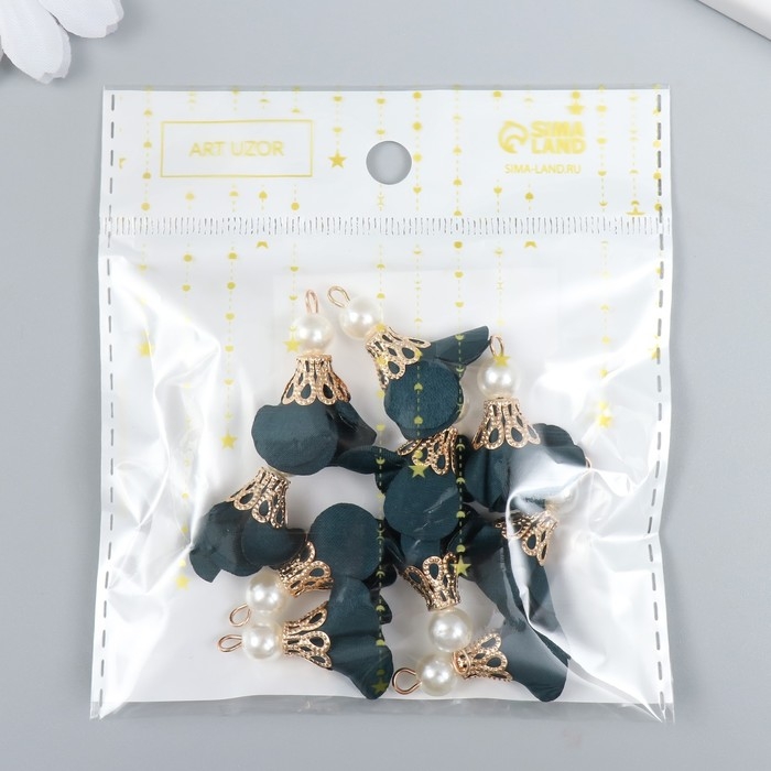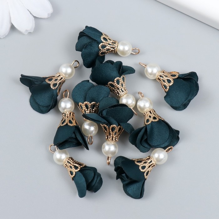Декор для творчества текстиль "Цветок с жемчужиной. Хвойный" набор 10 шт 2,5 см