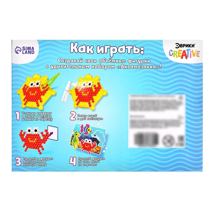 С аквамозаикой от торговой марки «Эврики» ребёнок соберёт объёмные фигурку из цветных бусинок. Детали плотно скрепляются друг с другом. Из бисера можно сделать интересную аппликацию на красочном фоне.