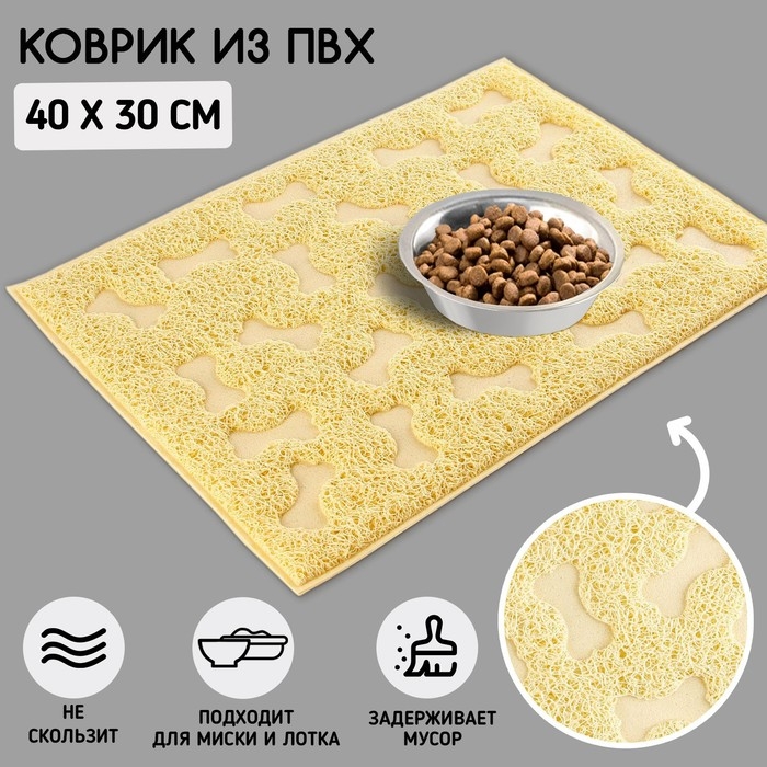 Коврик универсальный под миску и лоток «Косточки», 30х40 см, бежевый