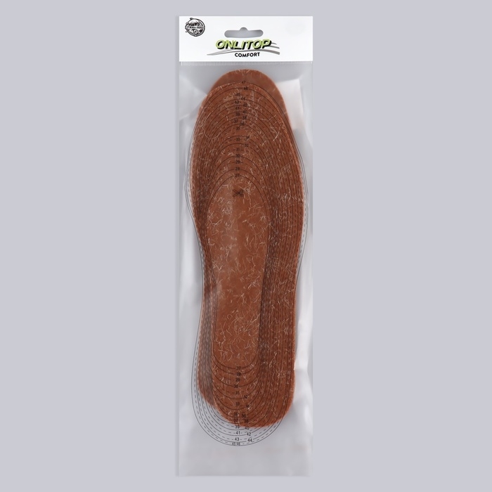 Стельки для обуви, утеплённые, универсальные, р-р RU до 42 (р-р Пр-ля до 45), 27 см, пара, цвет коричневый