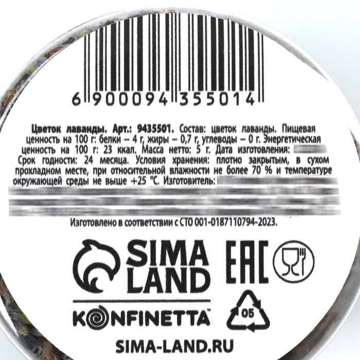 Цветы сухие «Лаванда» для капкейков, тортов, напитков, 5 г.