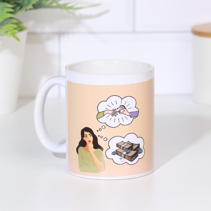 Кружка изготовлена из керамики. Рисунок нанесён методом сублимации, при котором краска проникает в верхний слой изделия, поэтому изображение получается стойким.