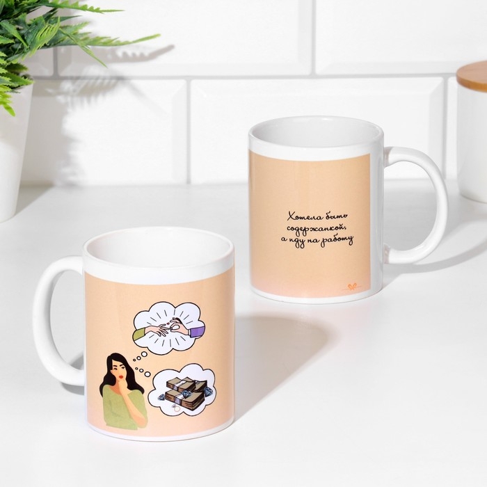 Кружка сублимация "Хотела быть содержанкой, а иду на работу", 320 мл, c нанесением