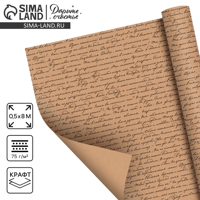 Бумага упаковочная крафт в рулоне «Текст», 0.5 х 8 м