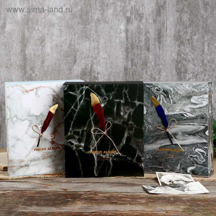 Фотоальбом на 80 фото 10х15 см "Мрамор и перо" в коробке МИКС 23х19,5х5 см