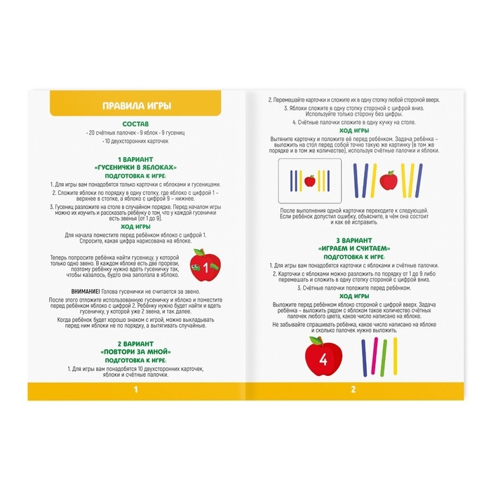 Как только выложены палочки для одного яблока, переходите к следующему. Играйте до тех пор, пока все яблоки не будут выложены.